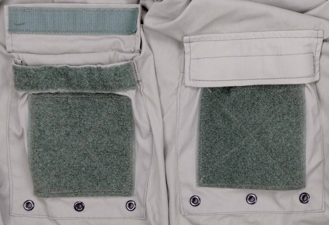 The Patagonia design features a more modern cut that is similar to civilian ourdoors clothing. Specifically, Patagonia’s PCU was based on their commercial MARS (Military Advanced Regulator System) line. The arm pockets are lower profile and close with zippers instead of flaps like the Orc example. The color of the zippers and velcro now matches the base fabric color. Patagonia has the current (as of 2018) government contract for PCUs, also available in camouflage patterns like AOR1 and 2 and Multicam [6] (Catalog formerly available at https://www.gsaadvantage.gov/ref_text/47QSWA19D0056/0VBSVU.3R25UL_47QSWA19D0056_LOSTARROWINC47QSWA19D0056.PDF).