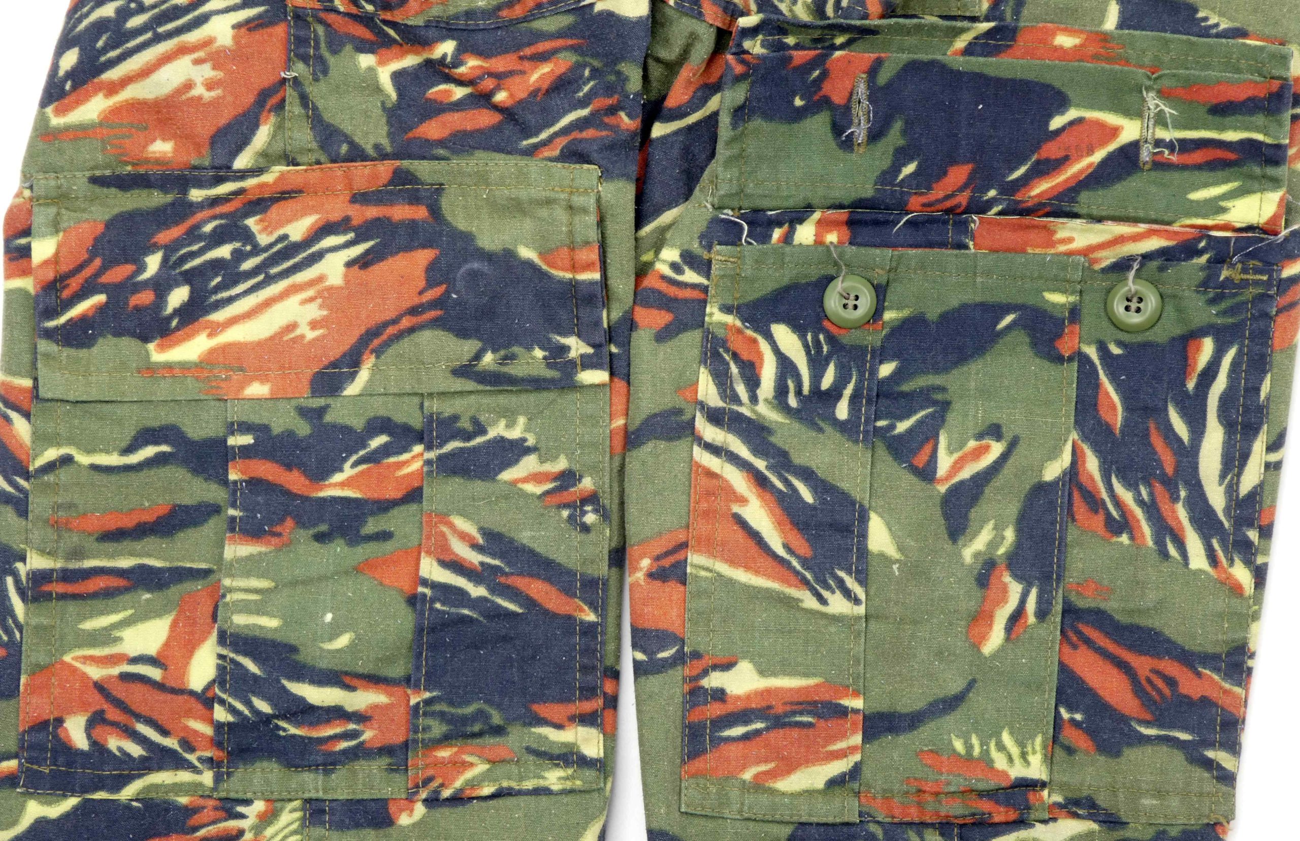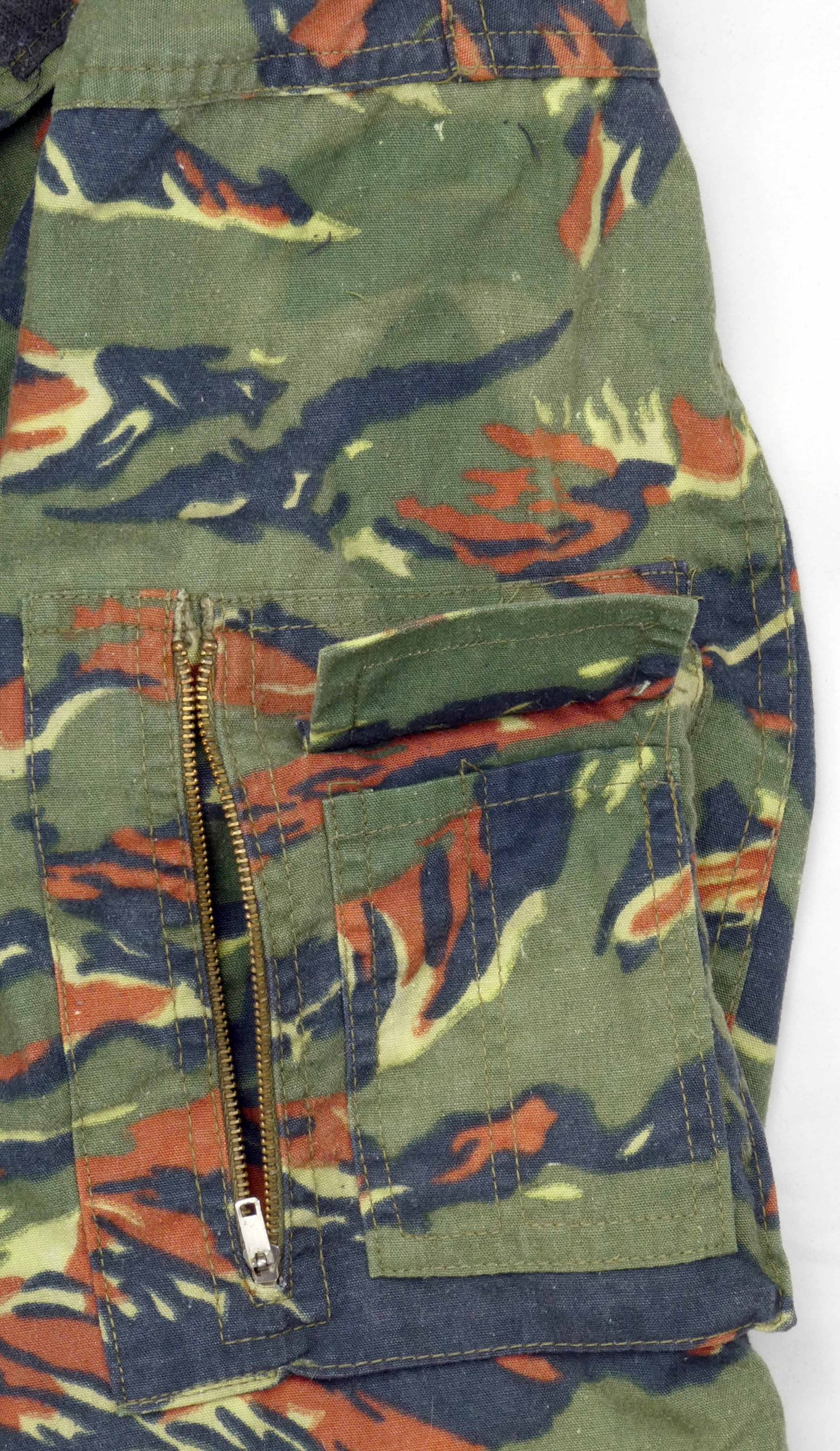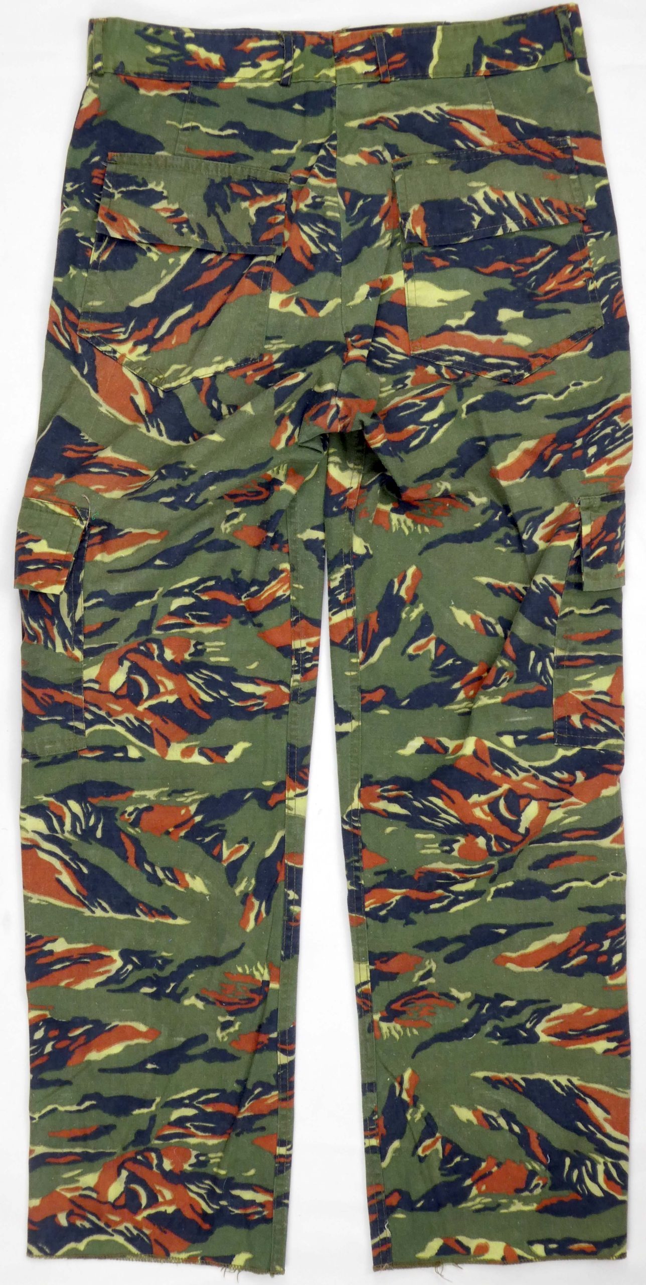 Also similar to US Jungle Fatigue trousers, except cargo pocket flap is not attached on one vertical edge.
