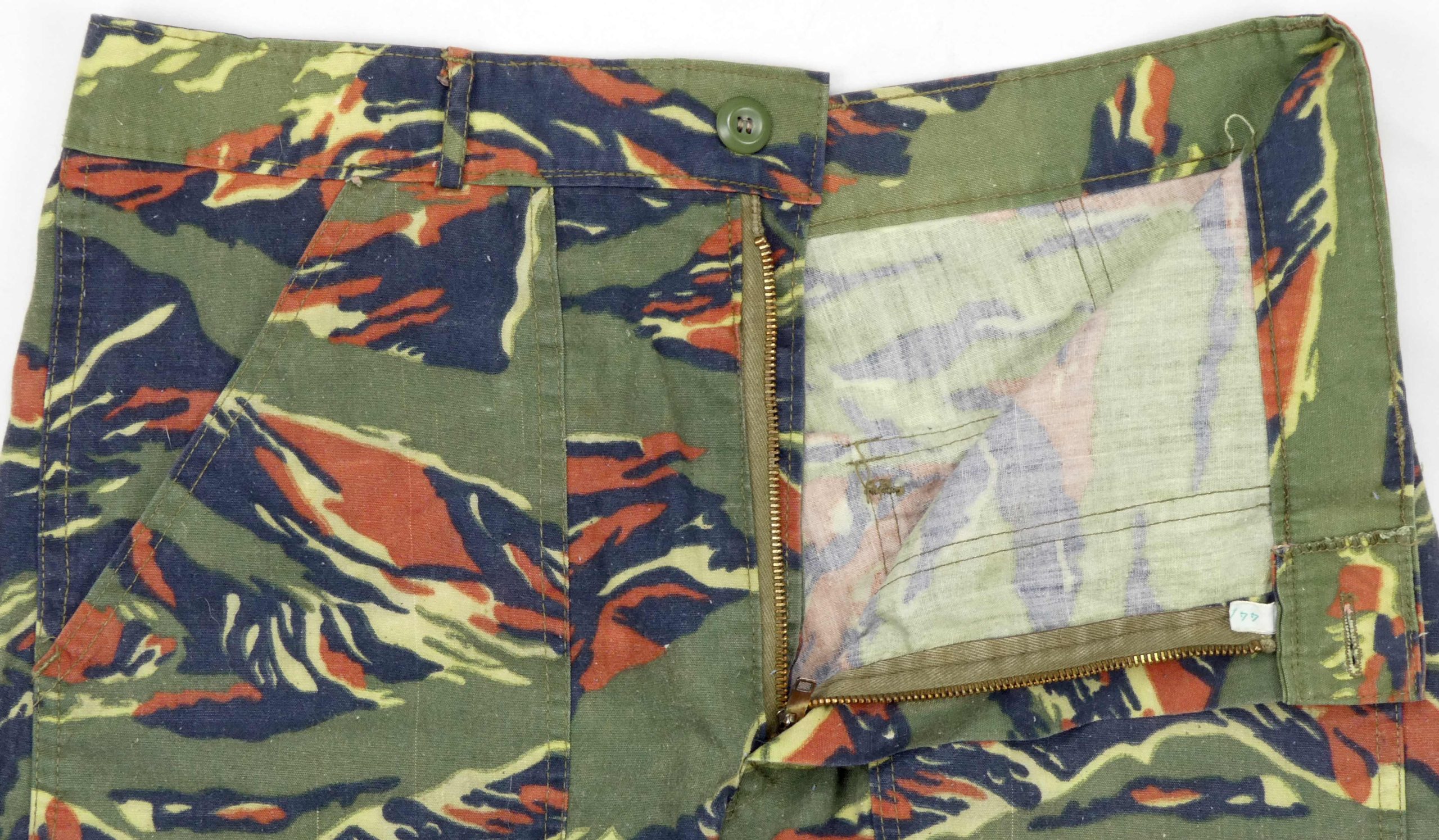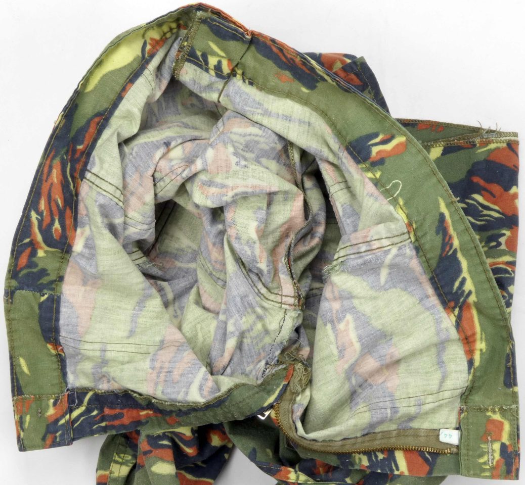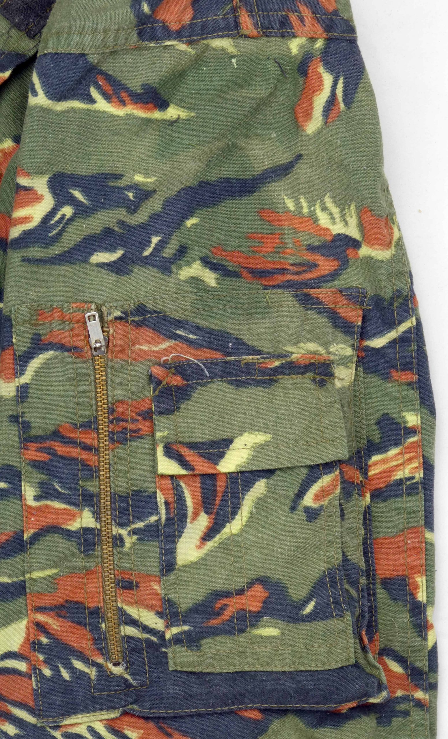 Also similar to US Jungle Fatigue trousers, except cargo pocket flap is not attached on one vertical edge.