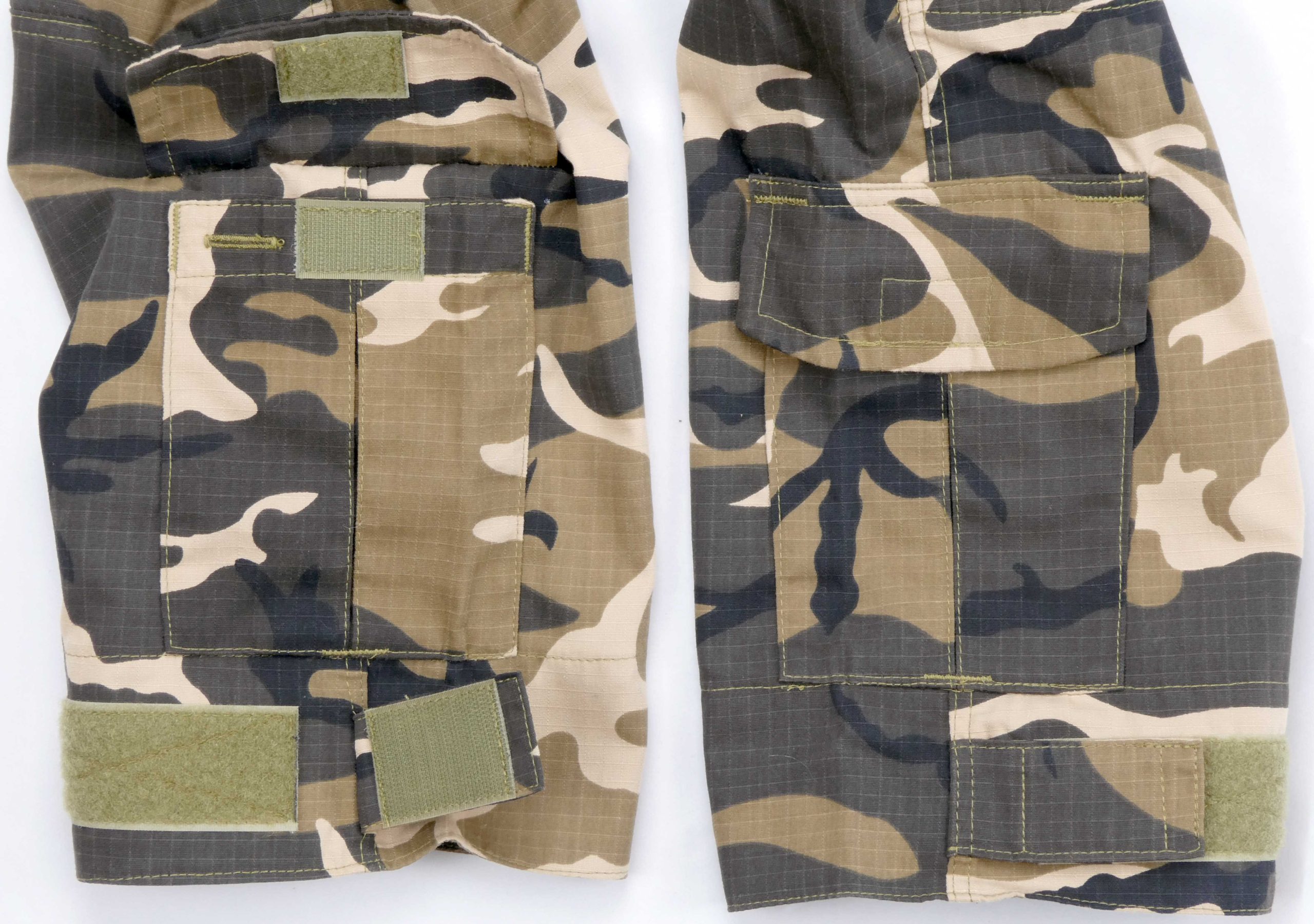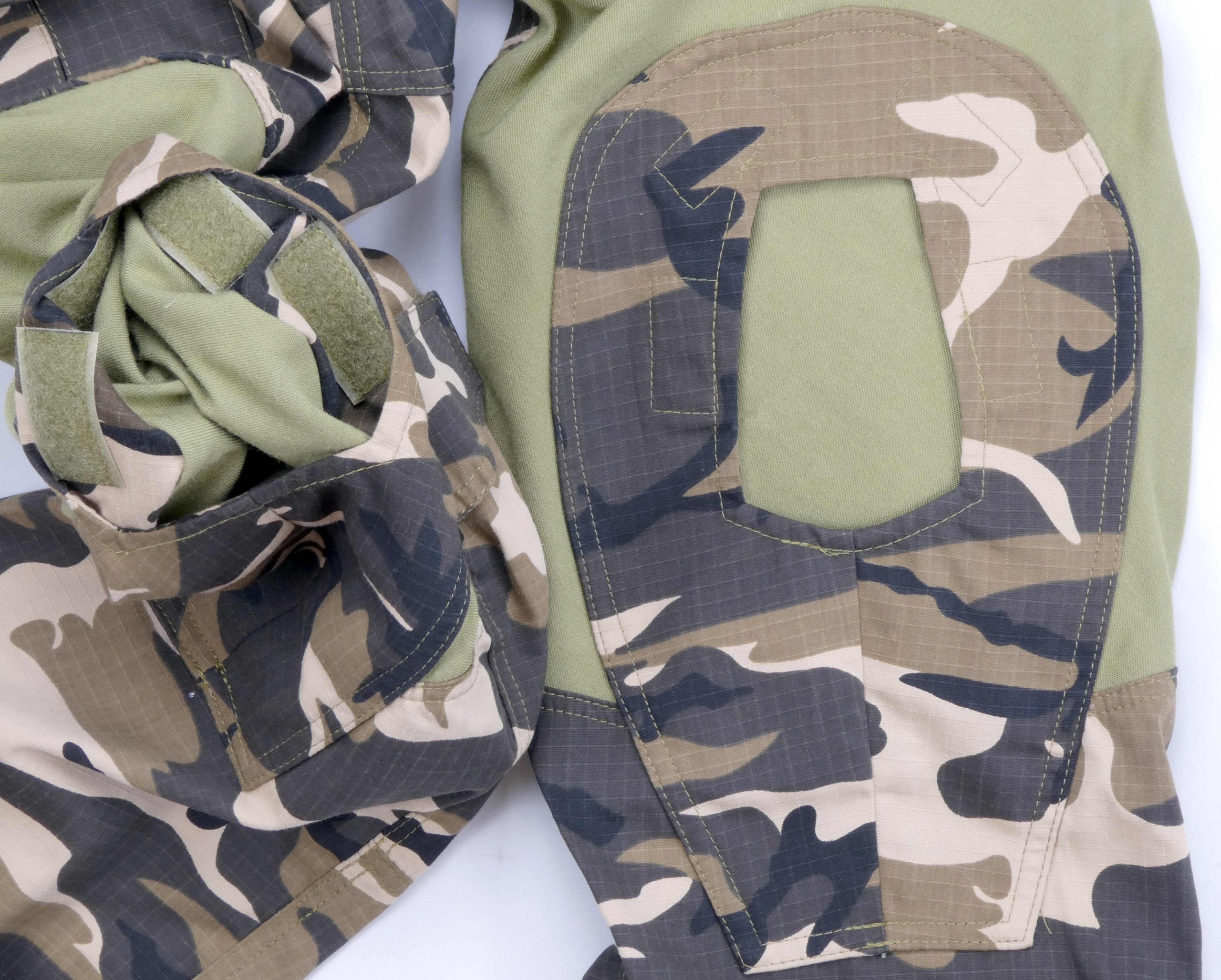 Has velcro-attached hole covers like Crye G3 pants.