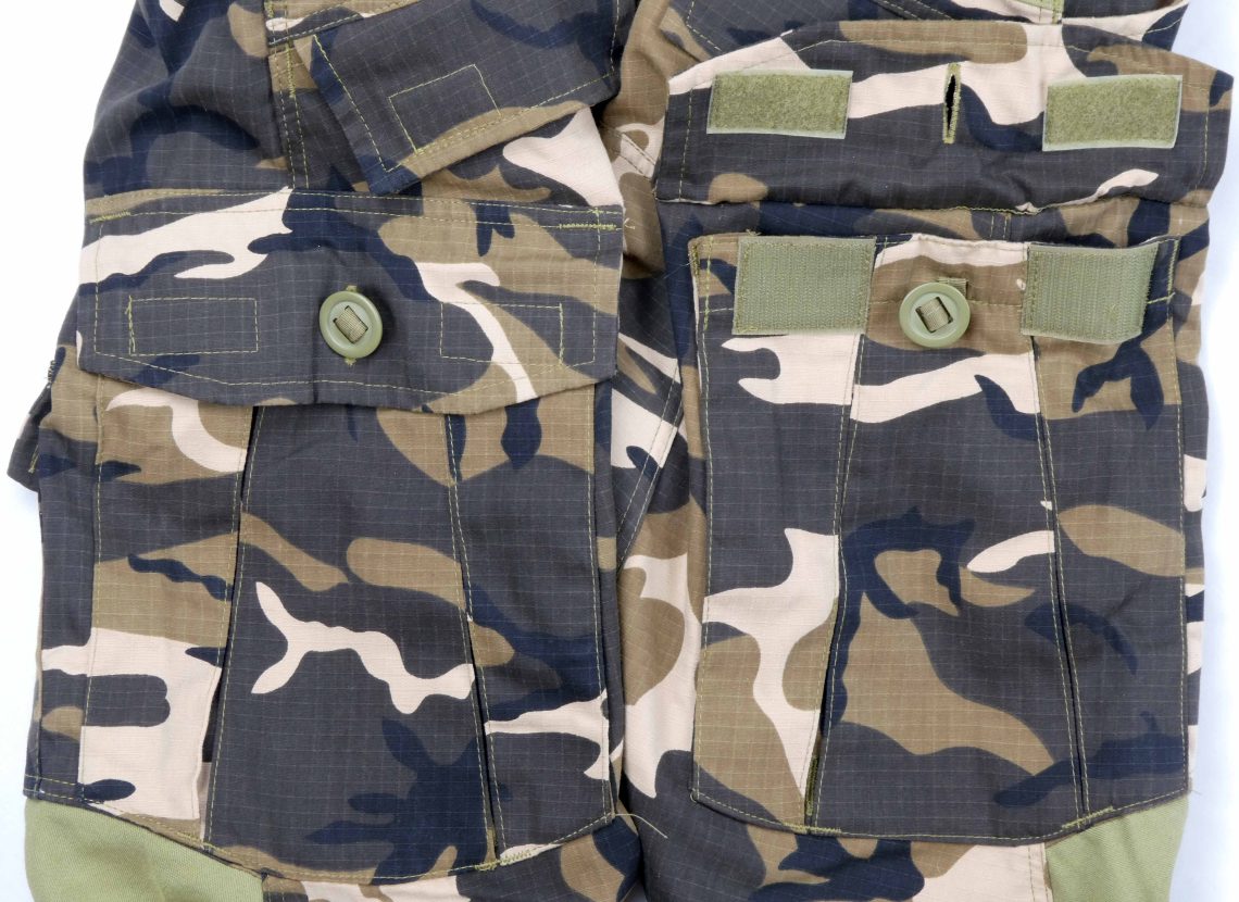 CUTS stands for “Cool Under Tactical Shirt”. It is clearly based on the Crye Precision combat shirt with a flexible moisture wicking torso meant to be worn under body armor (plate carrier) and “BDU weight” camouflage cloth for the arms, with arm pockets and elbow pad slots.