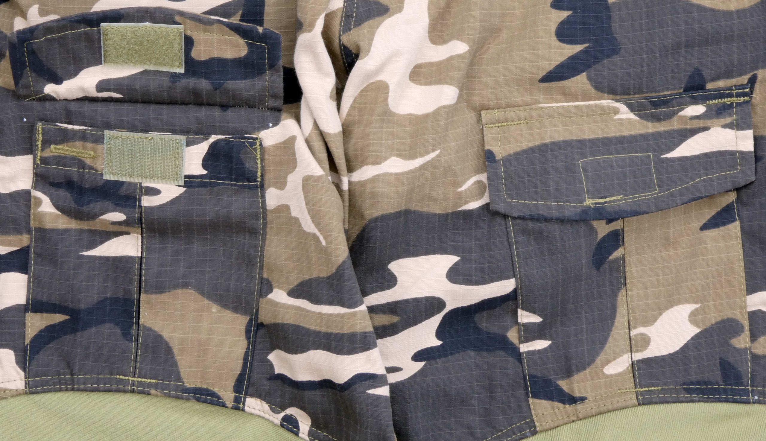 Pockets fold over at the top like Canadian combat jacket and British tropical shirts.
