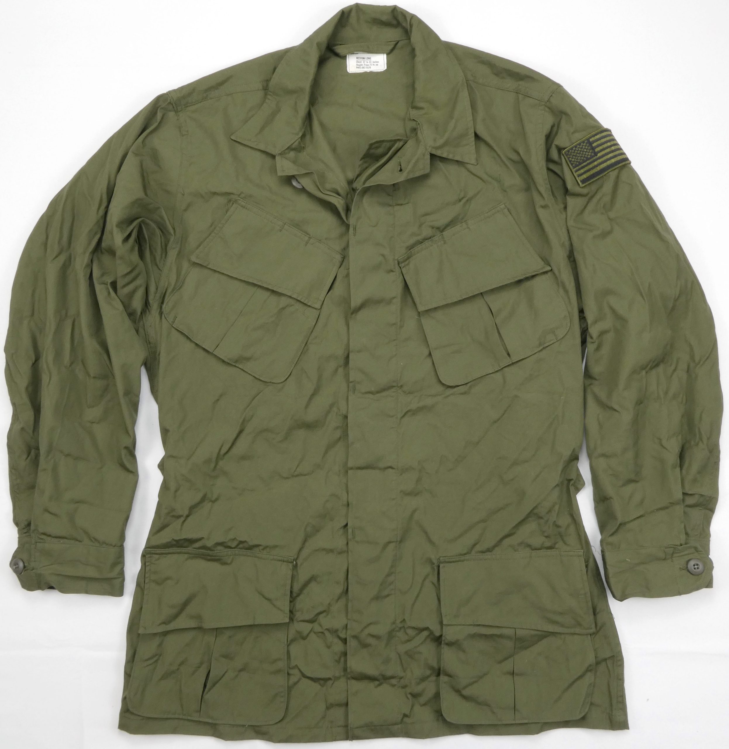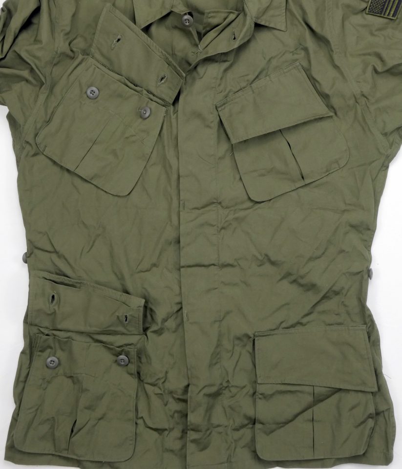 This was the most common version of jungle fatigue and was produced from 1967 until the end of production in 1970 or 1971. The 3rd pattern simplified the second pattern by removing the internal gas flap, waist adjuster, and epaulets. Most third pattern uniforms were made in ripstop fabric (majority after 1968), though some earlier dated examples were made from previously-produced non-ripstop poplin (some collectors classify these non-ripstop items as transitional second pattern items).