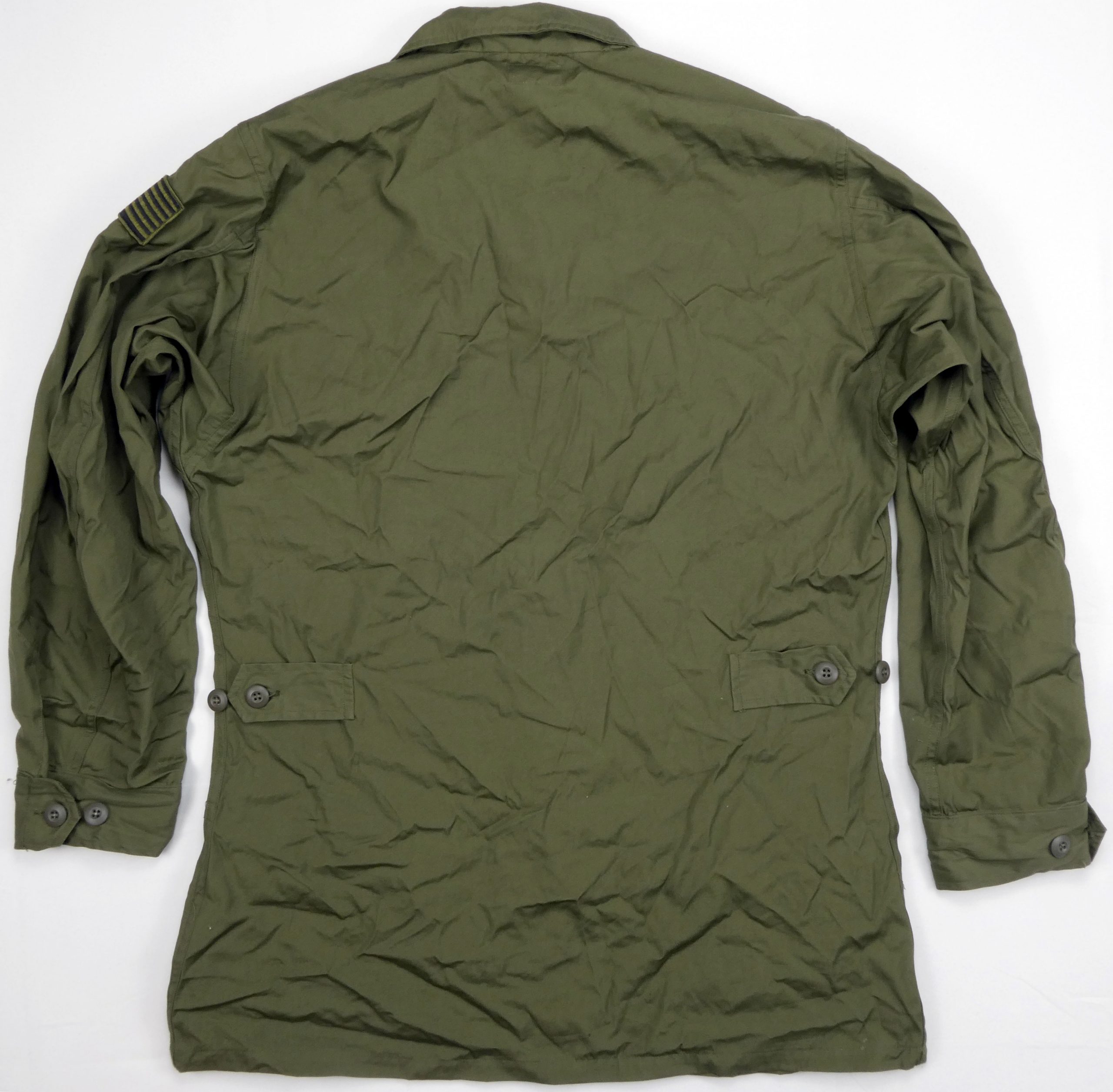 The second pattern was largely the same as the first pattern, but with covered pocket buttons to prevent snagging onto vegetation. These were produced from 1965 – 1966. The flag patch on this example was added some time during the 1980’s.