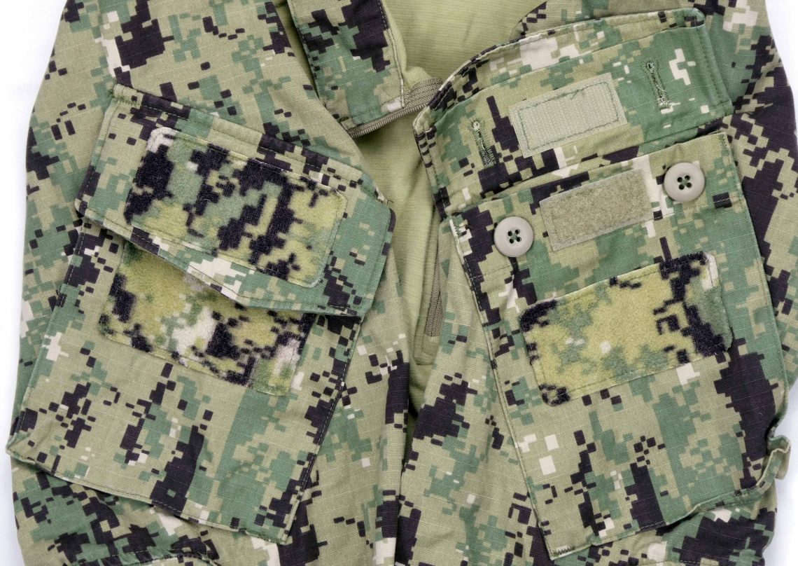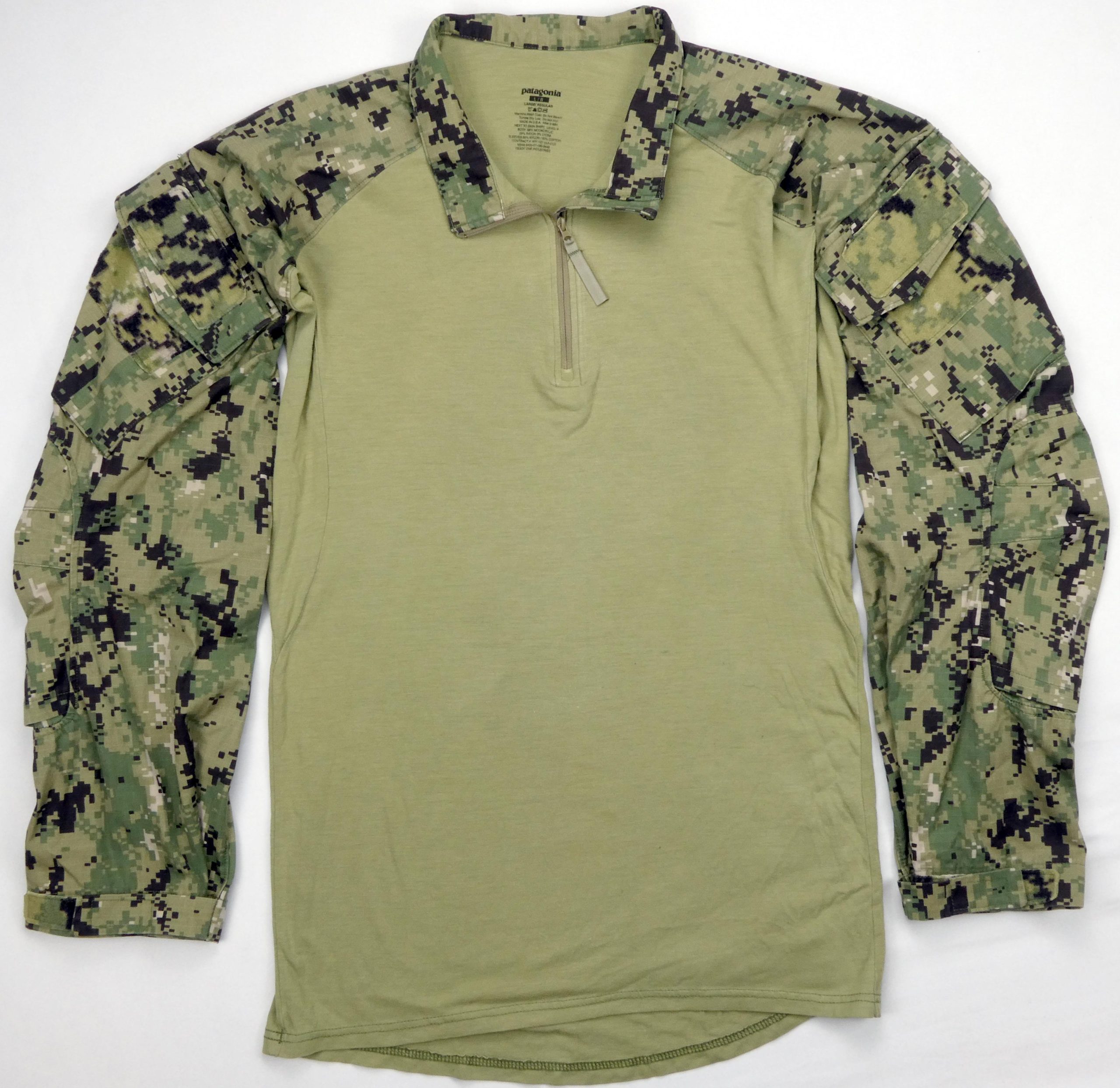 This version of the Patagonia combat shirt has a solid colored torso material like the Crye Precision version it partially replaced. Later versions used matching camouflage print torso material [3].