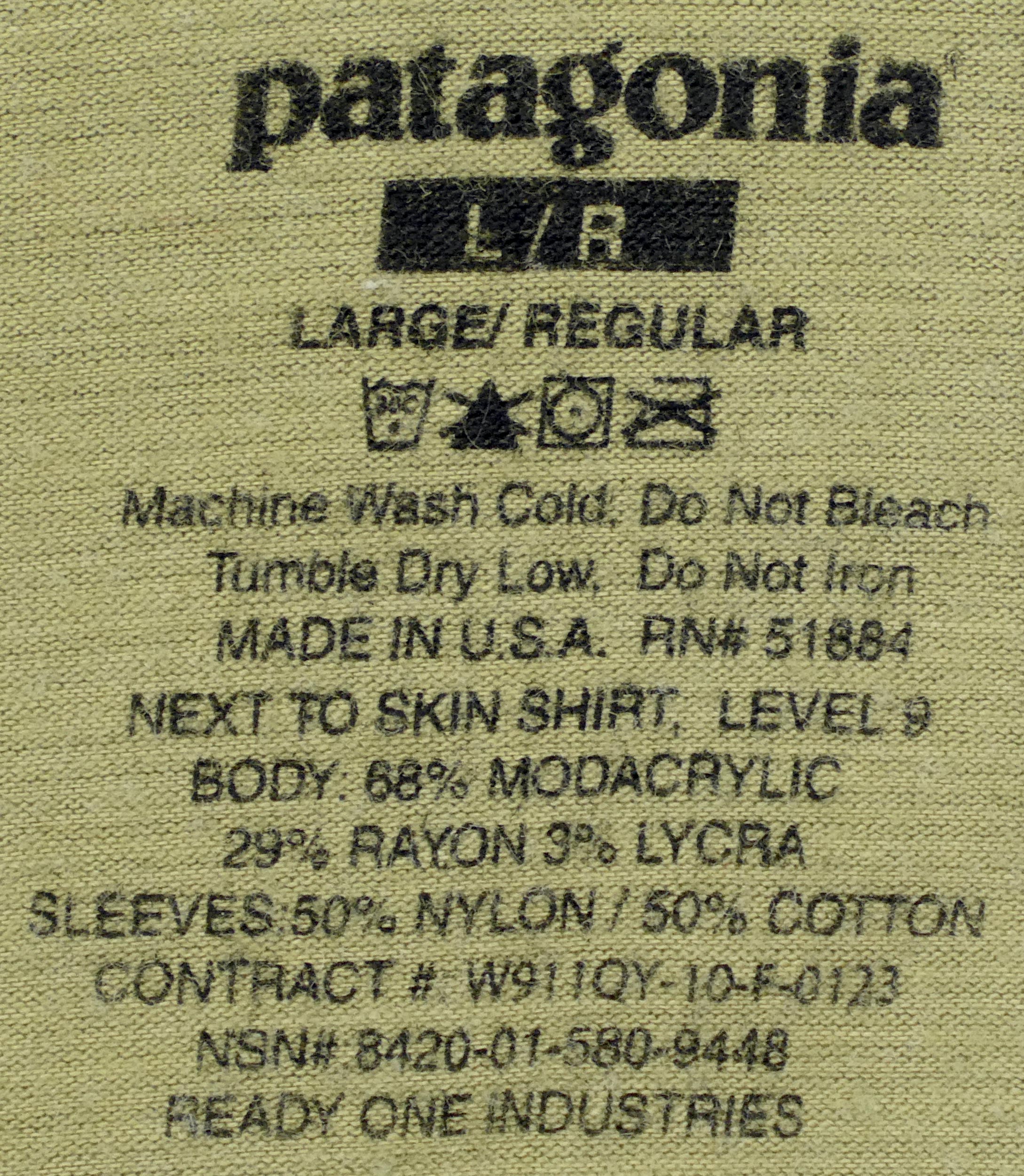 Camouflaged Patagonia PCU products made in the 2010’s tend to use velcro loop with matching camouflage print. There was an even earlier Gen 1 version that used a larger velcro loop field similar in size to the Crye G2 combat shirts [4].