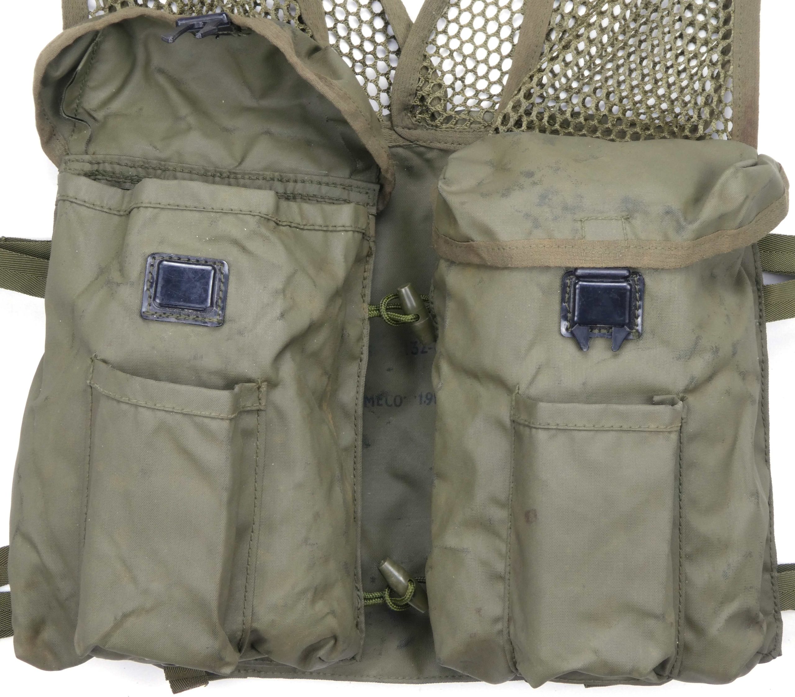 In the 1960’s, Western military planners assumed that the Soviet Union would make extensive use of nuclear, biological, and chemical (NBC) weapons in any conflict with the West. This assessment reflected both the contemporary rapid expansion of Soviet weapons of mass destruction (WMD) capabilities [1][2][3] and the prevailing Soviet military doctrine at the time, which framed nuclear escalation as “inevitable” and oriented strategic planning toward the prospect of global nuclear war [4]. In response, the British military tested load-bearing equipment made from butyl nylon in the early 1970’s since it was believed to be easier to decontaminate than the standard issue cotton P58 webbing. Most of these test pieces are dated 1972–1973, leading collectors to call them “Pattern 72” or “1972 Pattern”. [5] Although most P72 equipment was never officially adopted, the “Pack, Combat, Lightweight” vest, shown on this page, saw extensive use by British Special Forces from the 1970’s through the 1990’s, with production continuing well beyond 1973.