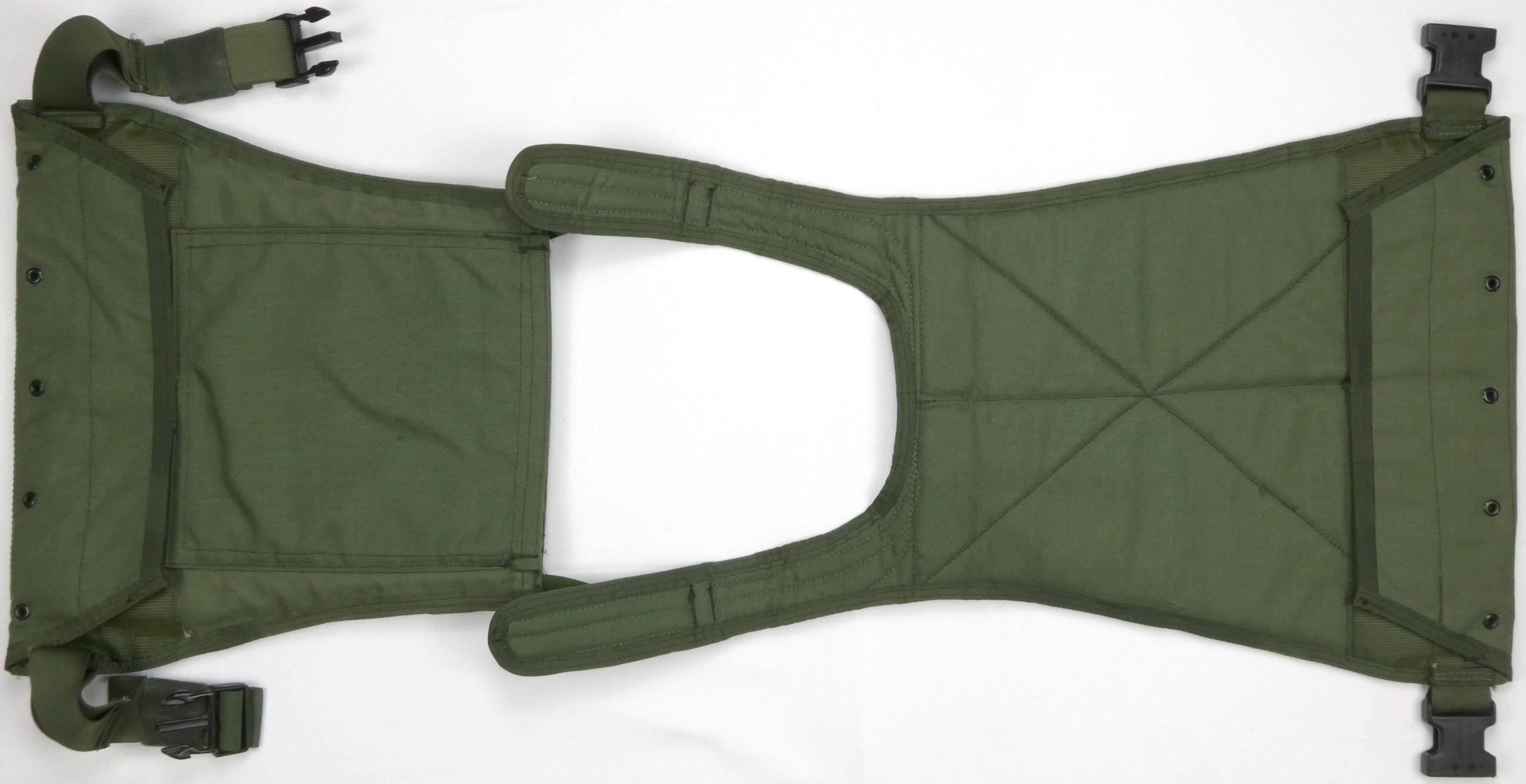 MBSS stands for “Maritime Ballistic Survival System” [1]. The MBSS plate carrier has trapezoidal plate bags meant to hold foam floatation inserts for maritime operations as well as SAPI ballistic plates. It was issued as part of a set which also includes pouches and a Modular Assault Pack (MAP) for the back which is available as a separate pack that can be attached to the MOLLE webbing or sewn to an entire back platebag. The MBSS has been produced in green and tan colors. [1][2]